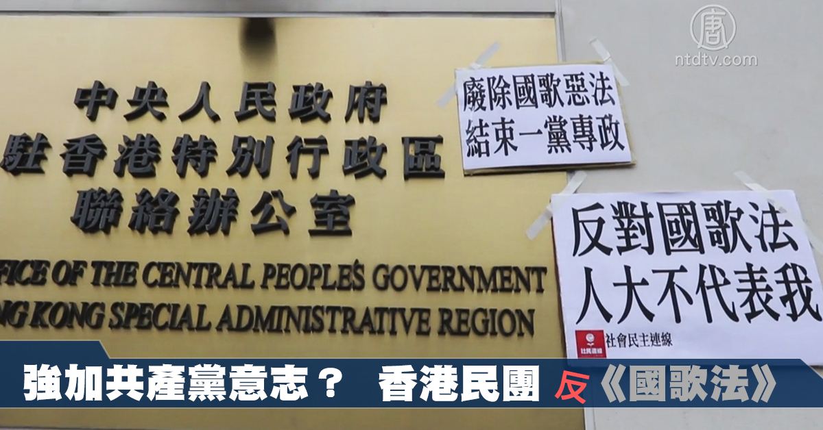 【新唐人亞太台 2017 年 11 月 06 日訊】鏡頭轉到香港,中共人大上星期將《國歌法》納入《基本法》附件,如果不尊重 中共國歌,可能有3年牢獄之災,對此,香港多個團體批評,這是強加共產黨的意志給香港,還說,當初做中共歌曲的人,也被中共迫害。