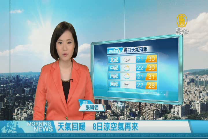 【新唐人亞太台 2017 年 11 月 07 日訊】 歡迎您收看11月7日的早安新唐人,先來帶您關心今天的天氣情況。今天涼空氣再減弱,持續回暖。 不過,提醒您,明天和星期六,會有兩波涼空氣南下,氣溫將再下降。觀眾朋友記得適時增減衣物。。帶您一起來看到國際媒體重要訊息。