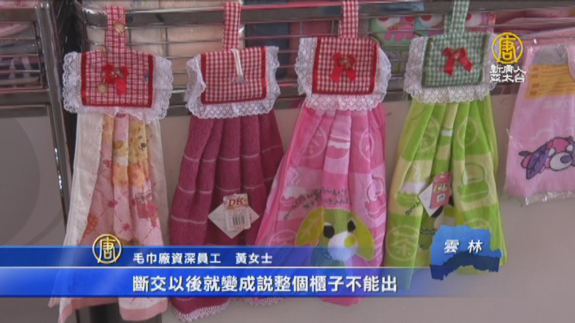 毛巾業者:「政府可以幫我們輔導一個園區,比如說各個加工鏈時候,每一個加工鏈都要多5%的稅額,如果在園區裏面加工,都不用重複繳稅,所以成本會降低。」