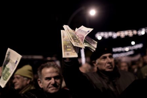 2016年領取養老金的退休人員在希臘雅典市中心抗議。(翻攝網絡)