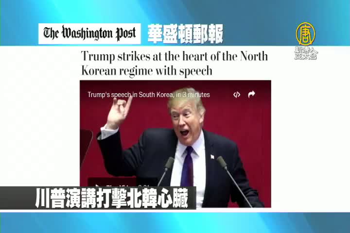【新唐人亞太台 2017 年 11 月 09 日訊】首先來看到美國華盛頓郵報報導:美國總統川普演講打擊北韓心臟。