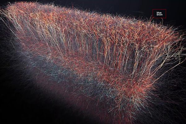 大腦中一個很小區域的神經細胞聯繫模式圖。(視頻截圖)