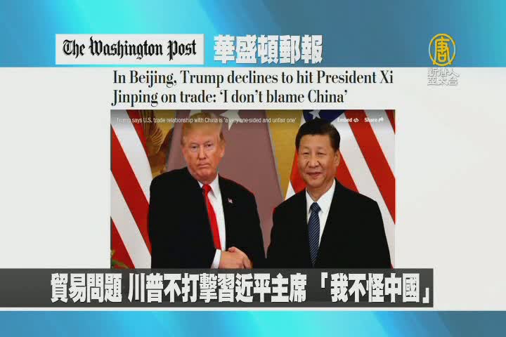 【新唐人亞太台 2017 年 11 月 10 日訊】首先來看到美國華盛頓郵報報導:貿易問題,川普不打擊習近平,表示「我不怪中國」。