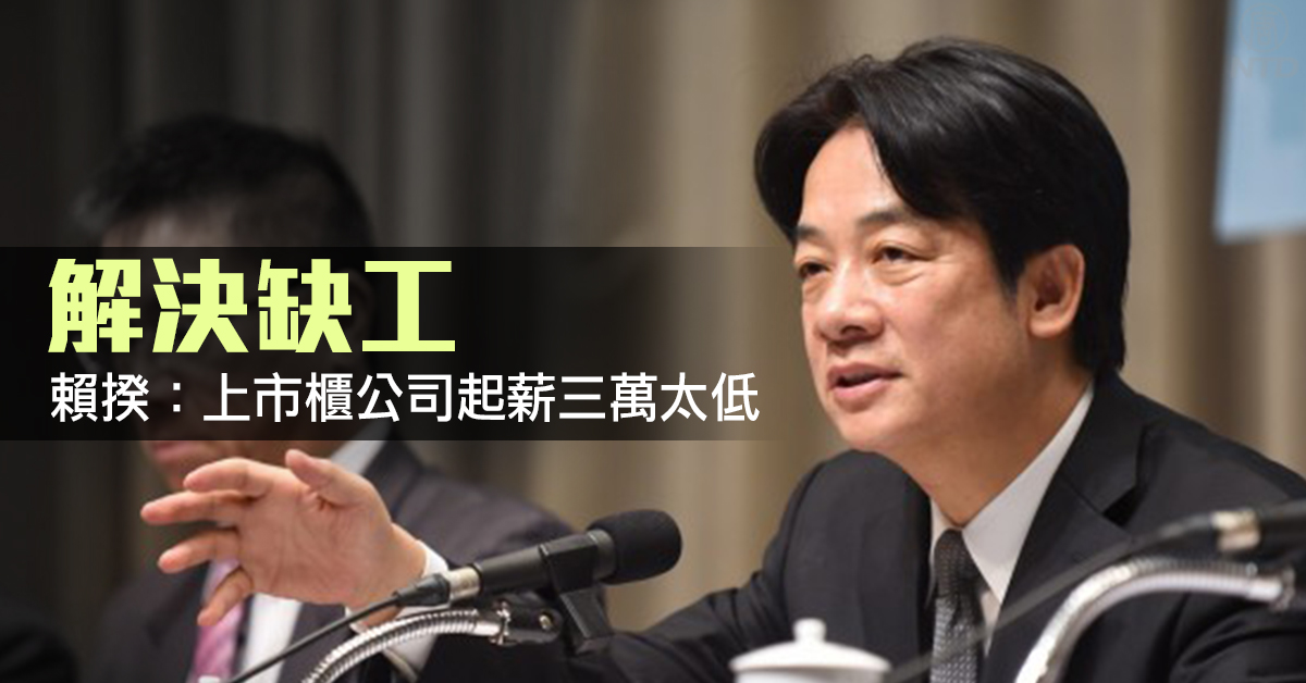 【新唐人亞太台 2017 年 11 月 10 日訊】行政院為了解決企業缺工、缺才問題,重新盤點相關法規,賴清德今天就說,他希望企業落實利潤分享,他還說,上市櫃公司和國際級企業,起薪在3萬塊以下,都太低了。
