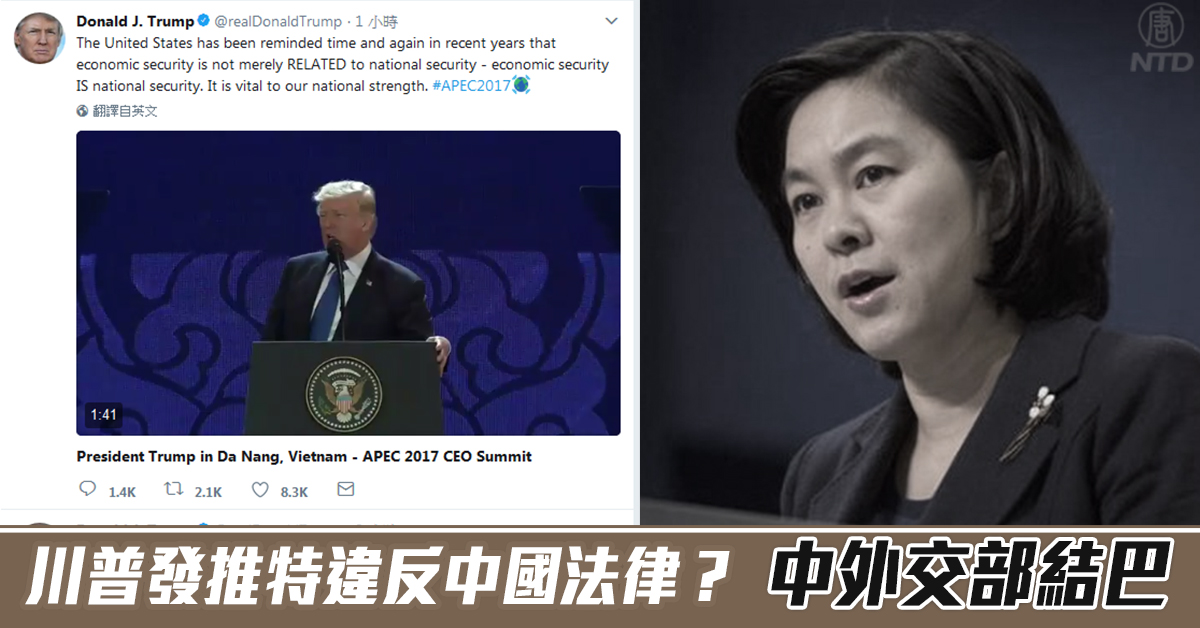 【新唐人亞太台 2017 年 11 月 10 日訊】川普發推特違反中國法律?中外交部結巴