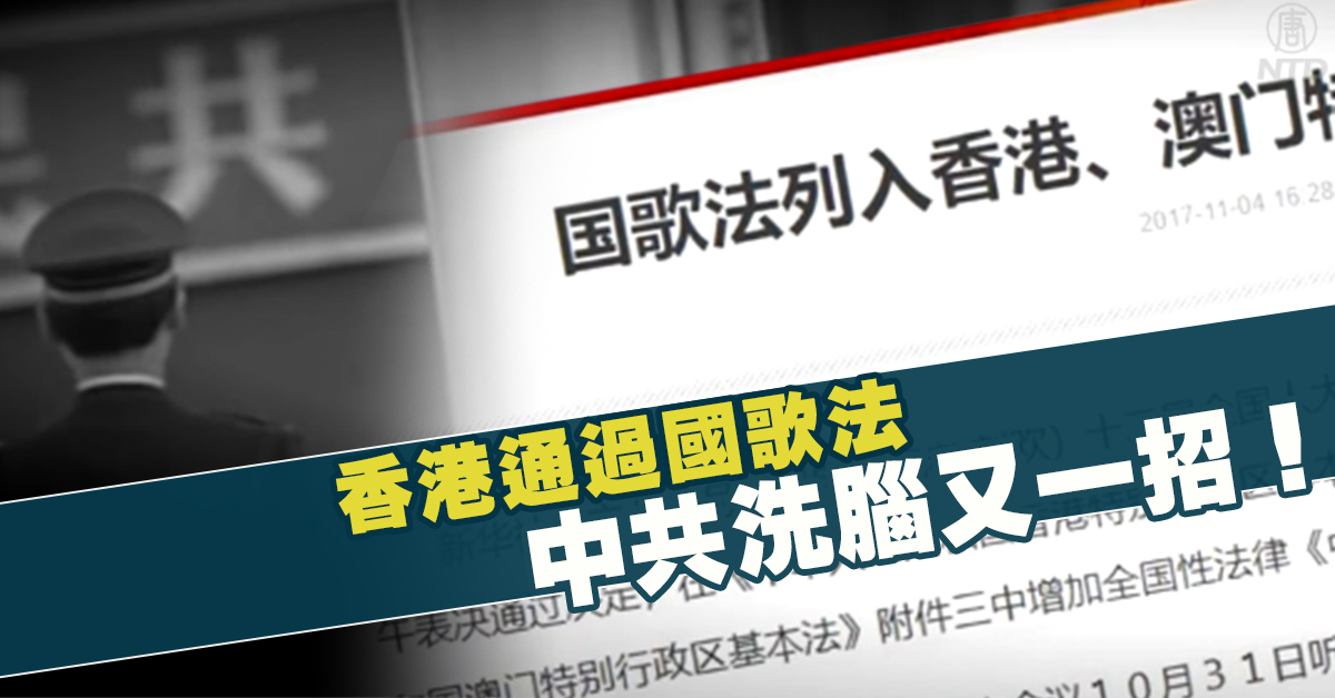 【新唐人亞太台 2017 年 11 月 10 日訊】好,中共人大常委會11月4號通過將《國歌法》納入香港《基本法》附件三,往後,在香港如果「噓國歌」將觸犯刑法,可能會面臨3年以下有期徒刑。有評論指出,中共混淆「黨」、「國」概念,又利用《國歌法》給港人洗腦。請看我們今天的,透視焦點。