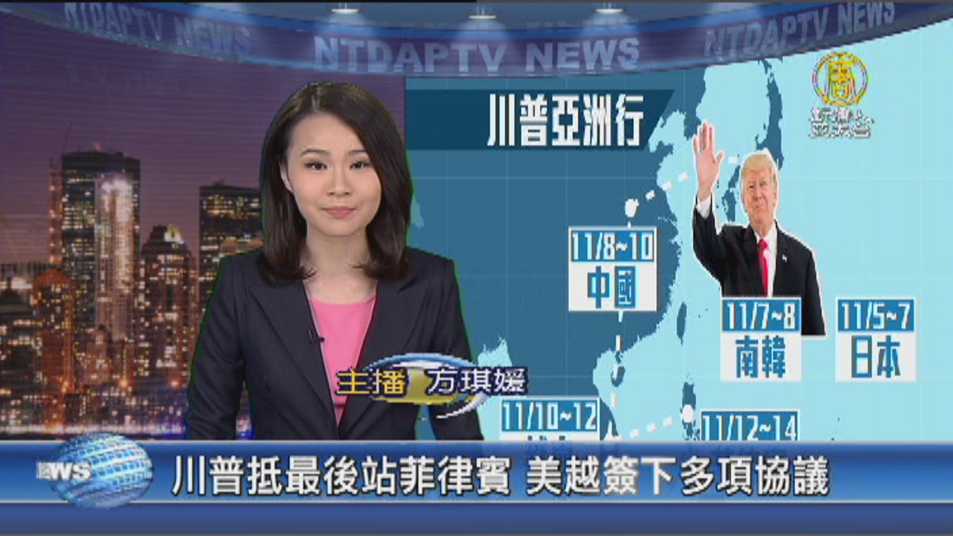 【新唐人亞太台 2017 年 11 月 12 日訊】新聞一開始,持續為您聚焦,美國總統川普的亞洲行,已經要進入尾聲,他今天在越南首都河內,進行國是訪問,美越兩國簽下多項協議,內容包括天然氣部門、運輸和航空。隨後,他又馬不停蹄的飛往最後一站--菲律賓,參加東協50周年慶祝晚宴,明天將和菲律賓總統,杜特蒂會面。