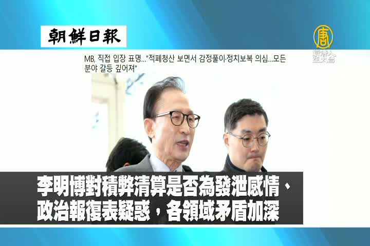 【新唐人亞太台 2017 年 11 月 13 日訊】來看到韓國朝鮮日報報導:李明博對積弊清算是否為發泄感情、政治報復表疑惑,各領域矛盾加深。