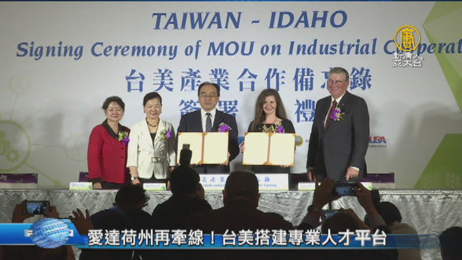 【新唐人亞太台 2017 年 11 月 13 日訊】再來帶您聚焦,台美友好經貿合作。台灣與愛達荷州的交流,已經長達40年,今天(13號),愛達荷州的產業訪問團來到台灣,簽署了三項合作備忘錄,要與台灣搭建專業人才的交流平台。