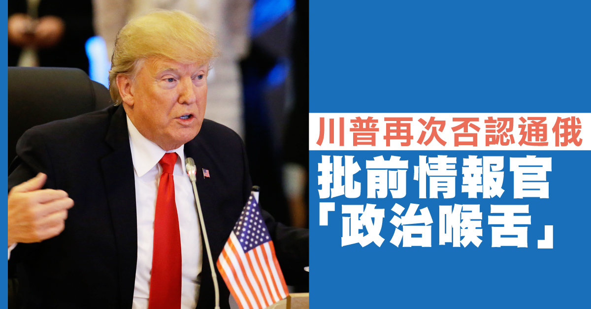 美國總統 川普:「我支持我們的情報機構,特別是由新官員組織的情報機構。我相信我們的情報機構,我與他們緊密合作。」