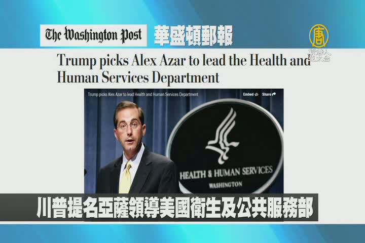 【新唐人亞太台 2017 年 11 月 14 日訊】首先來看到美國華盛頓郵報報導:川普提名亞薩領導美國衛生及公共服務部。