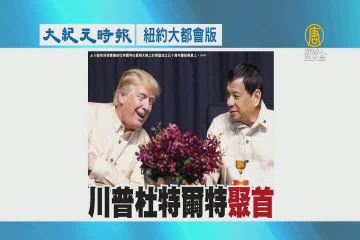【新唐人亞太台 2017 年 11 月 14 日訊】接著看到大紀元時報紐約大都會版報導:川普、杜特蒂聚首。