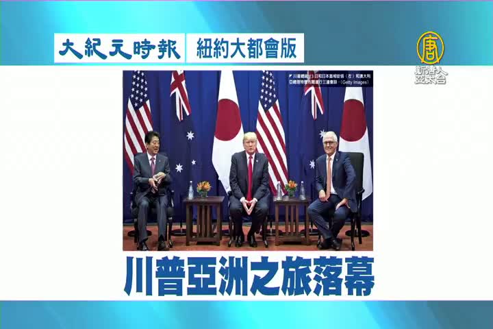 【新唐人亞太台 2017 年 11 月 15 日訊】接著看到大紀元時報紐約大都會版報導:川普亞洲之旅落幕。