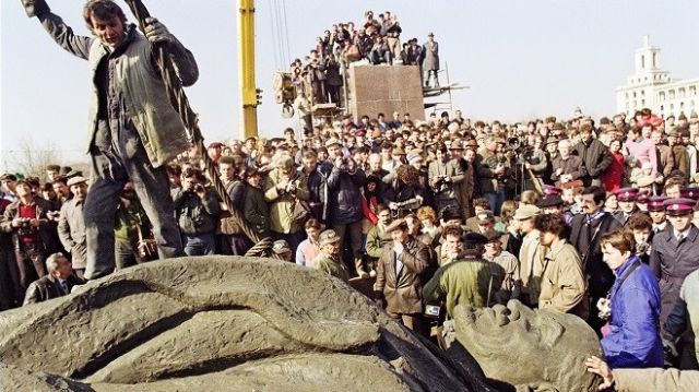 其後又發生所謂蘇聯的解體。當然在蘇聯轉型期間,很多地方的加盟共和國,尤其是那些所謂波羅的海三小國,他們本來就是蘇聯用武力吞併的,所以這些國家紛紛要求獨立。當時蘇共的領導人戈爾巴契夫,他一方面不贊成獨立,但是另一方面他又不願意動武;在這樣的情況之下,蘇共的保守派也發動政變,以救國的名義把戈爾巴契夫軟禁,同時也打算要鎮壓各種民主力量,同時鎮壓各地所謂獨立運動。可是整個蘇共保守派發動的政變只維持了3天的壽命。