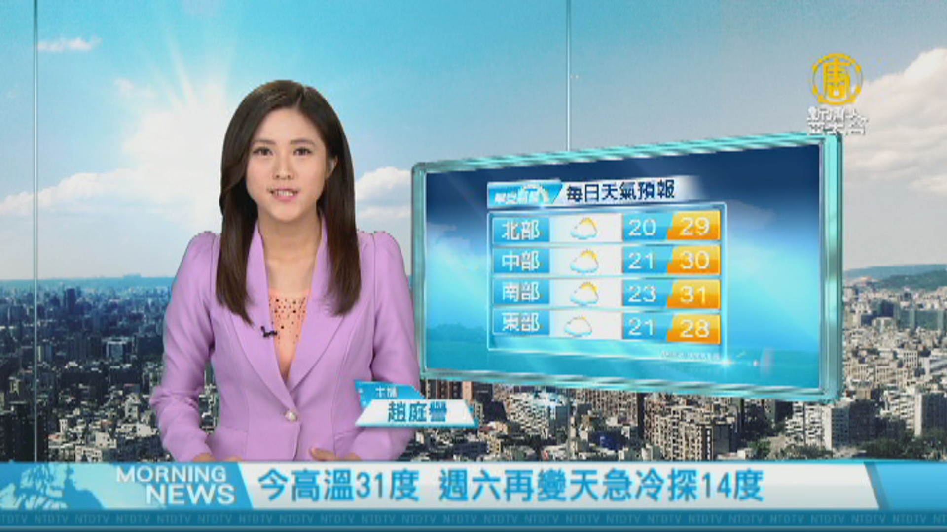 【新唐人亞太台 2017 年 11 月 16 日訊】歡迎您收看11月16日的早安新唐人,先來帶您關心今天的天氣情況。 今天西半部地區大都是多雲到晴的天氣,中南部地區高溫上看30、31度 ,不過,星期六,北方高壓南下,北部高溫會下探14度左右,中南部高溫也剩下19度左右,提醒觀眾朋友多多注意溫差。帶您一起來看到國際媒體重要訊息。