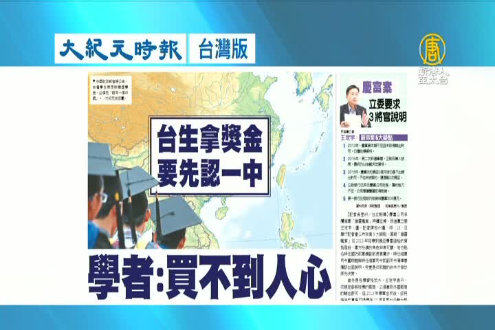 【新唐人亞太台 2017 年 11 月 16 日訊】繼續看到大紀元時報台灣版報導:台灣學生拿獎金,要先承認一個中國。學者表示,買不到人心。