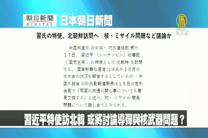 【新唐人亞太台 2017 年 11 月 16 日訊】來看到日本朝日新聞報導:習近平特使訪問北韓,或將討論導彈與核武器問題?