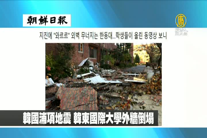 【新唐人亞太台 2017 年 11 月 16 日訊】來看到韓國朝鮮日報報導:韓國浦項地震,韓東國際大學外牆倒塌。
