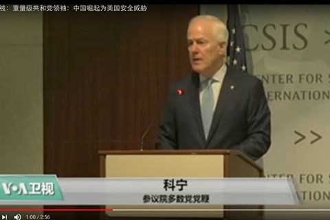 11月14日,參議院多數黨黨鞭科寧(John Cornyn)在「戰略暨國際研究中心」(CSIS)的年度研討會上表示,中國(中共)對美國是嚴重的安全威脅,柯寧還引用了美國中央情報局局長邁克·蓬佩奧的說法稱,從長遠來看中國將是一個比俄羅斯或是伊朗更巨大的安全威脅。