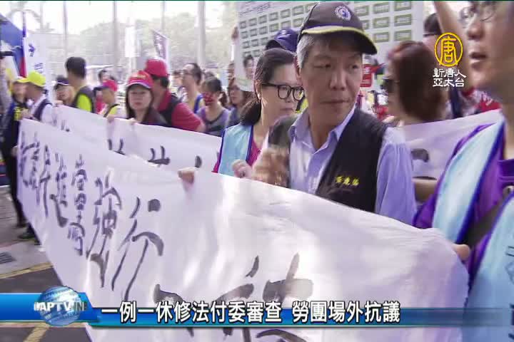 【新唐人亞太台 2017 年 11 月 17 日訊】繼續來看到,一例一休修法政院版,今天在民進黨團人數優勢下,交付社福衛環與經濟委員會聯席審查,最快下周一,就會處理,不過場外也有勞團,號召上百人,要求行政院撤回草案。