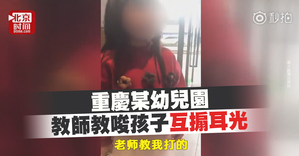 日前,中國網路上曝光重慶某幼兒園教師,教唆小朋友互搧耳光,家長們毫不知情。一位家長表示,他的小孩所在班級共三十多名學生。這些學生幾乎都充當過老師的「小幫手」去打同學,也被「小幫手」打過。