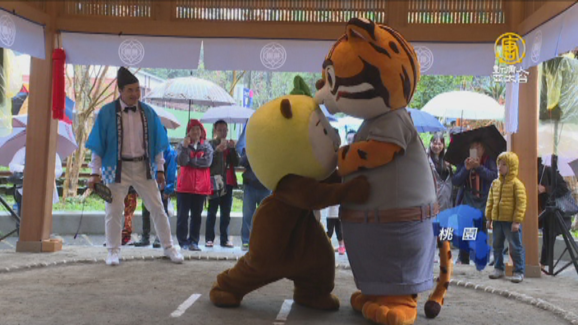 【新唐人亞太台 2017 年 11 月 19 日訊】桃園大溪舉辦小力士與吉祥物相撲比賽,桃園市吉祥物阿桃、園哥,與來自日本各地的吉祥物同台進行相撲戰,可愛搞笑的模樣,讓現場民眾笑翻天。