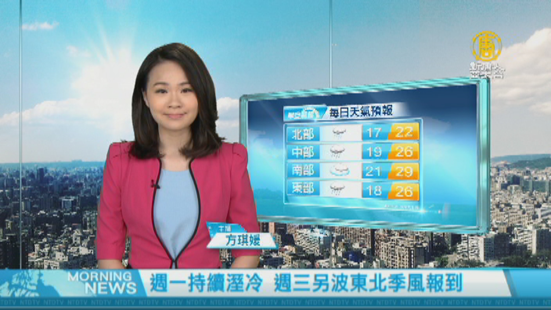 【新唐人亞太台 2017 年 11 月 20 日訊】歡迎您收看11月20日的早安新唐人,先來帶您關心今天的天氣情況。又是一個星期的開始了,昨天新北創下19.5度的入秋低溫。今天持續溼涼,星期二溫度會稍稍回升,不過,從周三晚上開始,又有一波冷空氣南下,提醒觀眾朋友要留意保暖。帶您一起來看到國際媒體重要訊息。