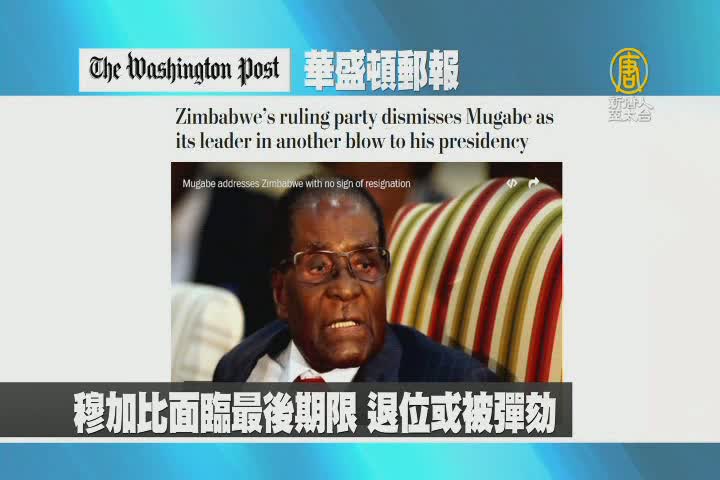 【新唐人亞太台 2017 年 11 月 20 日訊】首先來看到美國華盛頓郵報報導:辛巴威總統穆加比面臨最後期限,退位或被彈劾。