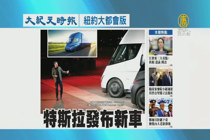 【新唐人亞太台 2017 年 11 月 20 日訊】接著看到大紀元時報紐約大都會版報導:特斯拉發布新車。
