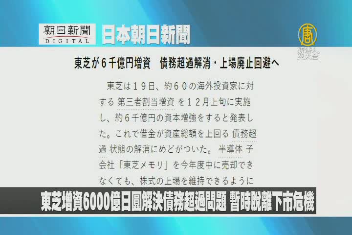 【新唐人亞太台 2017 年 11 月 20 日訊】來看到日本朝日新聞報導:東芝增資6千億日圓解決債務超過問題,暫時脫離下市危機。