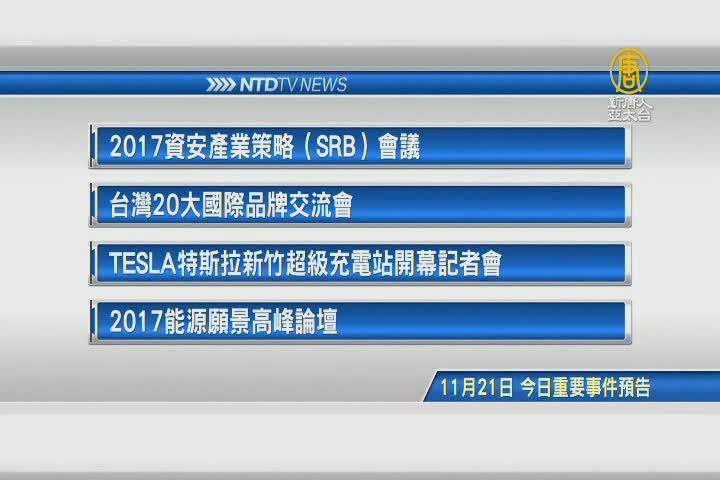 【新唐人亞太台 2017 年 11 月 21 日訊】接著看到,今天, 11月21日,星期二 ,有哪些重要活動。首先是,今天有一場,2017資安產業策略會議。再來是,台灣20大國際品牌交流會 。另外,電動車大廠TESLA,舉辦新竹超級充電站,開幕記者會。最後是,今天有一場,2017能源願景高峰論壇。