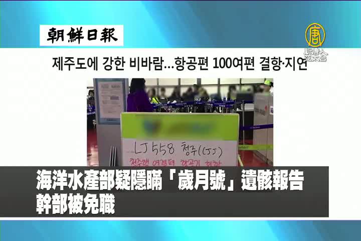 【新唐人亞太台 2017 年 11 月 23 日訊】來看到韓國朝鮮日報報導:韓國海洋水產部,疑似隱瞞「歲月號」遺骸報告,幹部被免職。