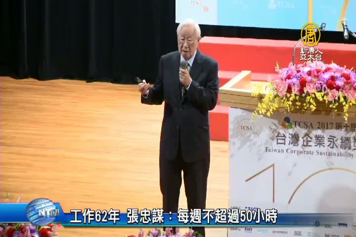 【新唐人亞太台 2017 年 11 月 23 日訊】台積電董事長張忠謀,出席活動,獲頒「企業永續終身成就獎」,張忠謀他說自己工作62年以來,每週在公司的時間,不超過50個小時, 直接讓外界聯想到,勞基法的一例一休修法,對於半導體人才出走中國,他認為台灣企業應該要給予更好的待遇,來留住人才。