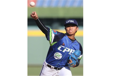 Lamigo新生代投手洪聖欽,穿上亞太電信中職聯隊戰袍展開練球,誓言要把冬盟冠軍獎盃留在台灣。(亞太電信提供)