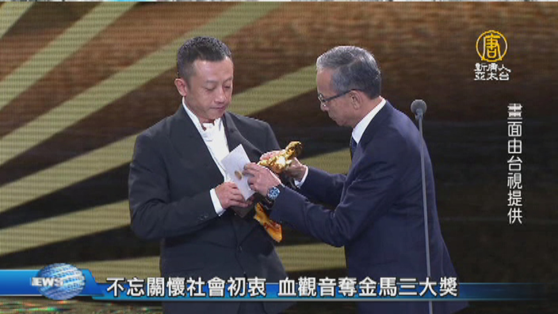 【新唐人亞太台 2017 年 11 月 26 日訊】再來看到,第54屆金馬獎昨天落幕,國片《血觀音》在,奪下最佳劇情片、最佳女主角獎以及最佳女配角三大獎,是本屆金馬獎大贏家之一,《血觀音》以女性心計為主軸,呈現人性和社會政商縮影,導演楊雅喆,上台致詞,還高舉沒有人是局外人的布條,喚醒大眾對社會議題的關注。