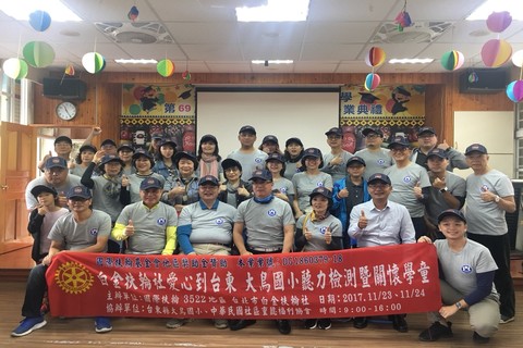 台東縣大鳥國小校長趙文佳說,學校合唱團以天籟之音迎賓,同時頒贈感謝狀,感謝白金扶輪社送愛心到偏鄉學校。目前學校共12班,學生總人數共134人,學生99%為排灣原住民生。其中低收身分學生30人,中低身分學生17人,新住民身分學生4人,隔代教養身分學生34人,單親身分學生29人。學校為讓學生能有課堂之外的學習及發展長才,自99年起創辦足球隊,在101年榮獲全國南區樂樂足球三年級組冠軍,104年榮獲全國五年級組第六名 。足球隊的孩子也靠著足球踢出自信、也踢出屬於自己發光發熱的舞台。