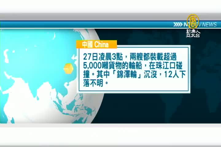 27日凌晨3點,兩艘都裝載超過5,000噸貨物的輪船,在珠江口碰撞。其中「錦澤輪」沉沒,12人下落不明。