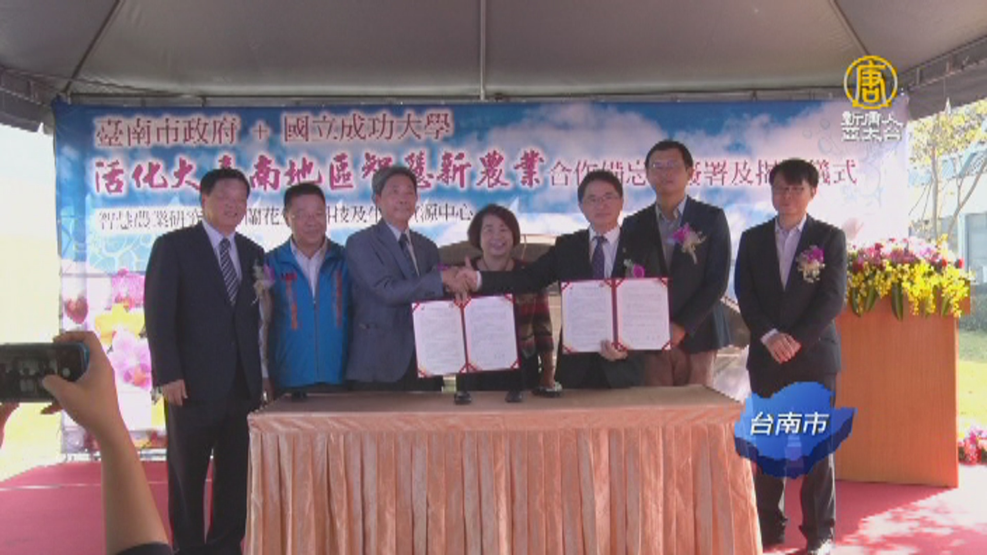 【新唐人亞太台 2017 年 11 月 29 日訊】台南後壁蘭花生物科技園區生產的蘭花,近年來在國際花卉舞台打響名號,台南市府與國立成功大學合作,推動智慧農業,簽署合作備忘錄。