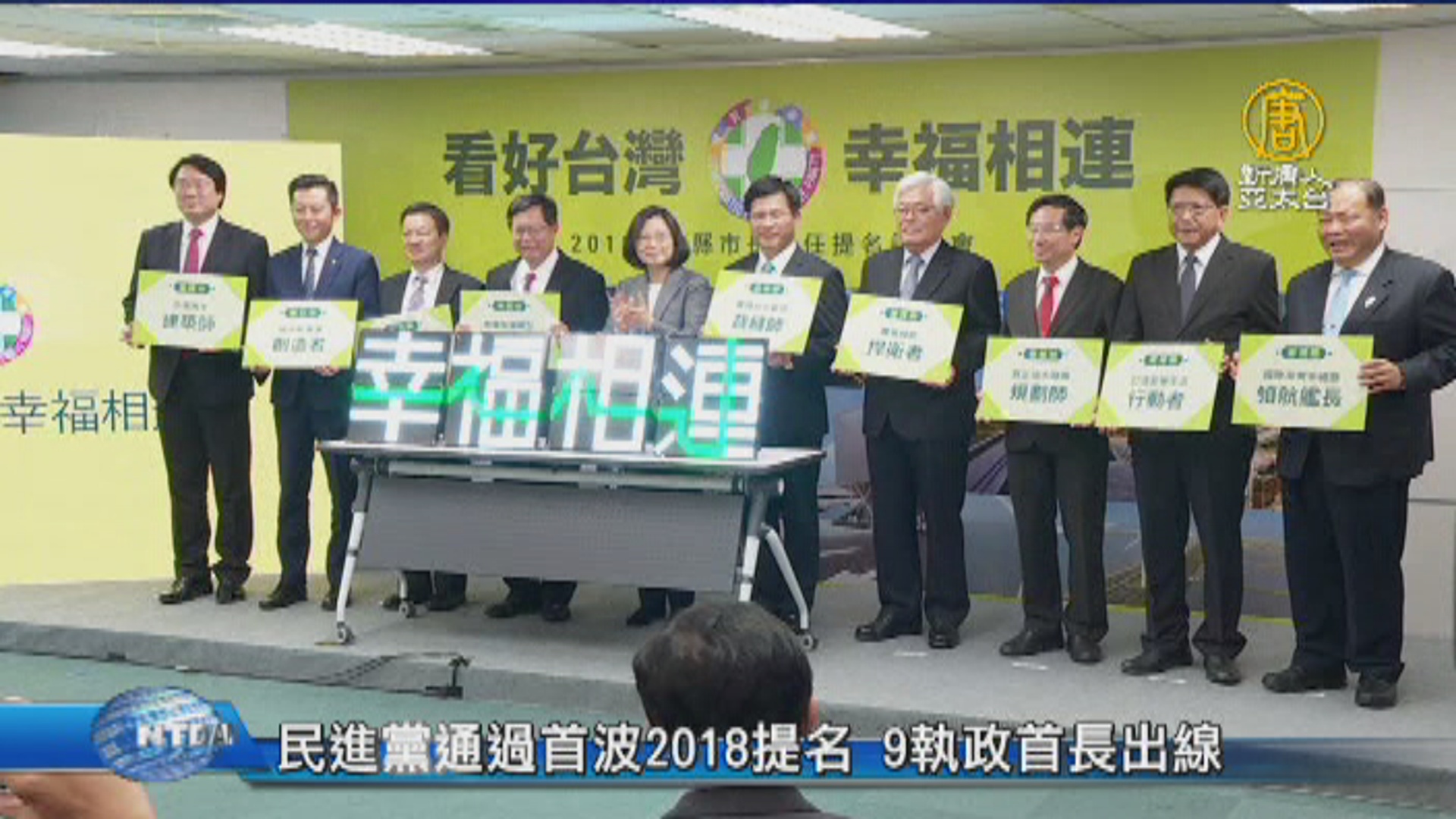 【新唐人亞太台 2017 年 11 月 29 日訊】歡迎回來。民進黨今天(29日)通過第一波2018地方首長選舉提名。包括基隆市、桃園市、台中市與彰化縣等九個執政縣市首長,獲得提名,爭取2018連任。黨主席蔡英文說,提名只是開始,接下來會組成最強的競選團隊。