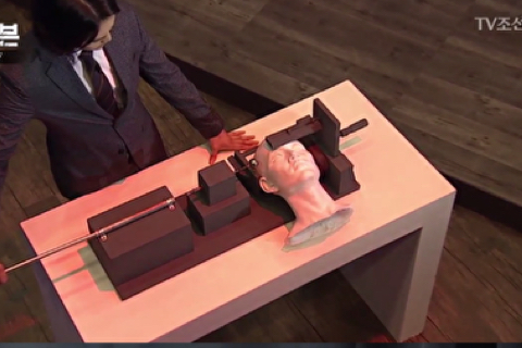 電視截圖「原發性腦幹損傷撞擊機」(TV朝鮮紀錄片專題《殺了才能活》)