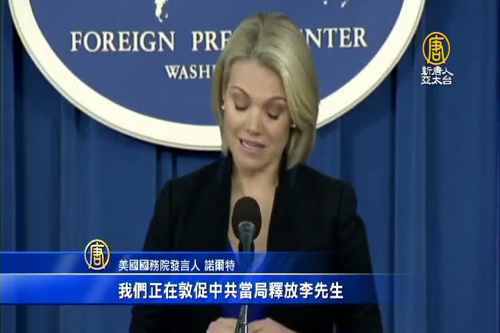 美國國務院發言人 諾爾特:「李明哲,是的,他被判處五年監禁,我們認為所謂顛覆國家政權是模糊指控。 我們正在敦促中共當局釋放李先生,讓他回到家中。」「我可以告訴你,總統、副總統與國務卿提勒森,持續和中國進行人權對話」