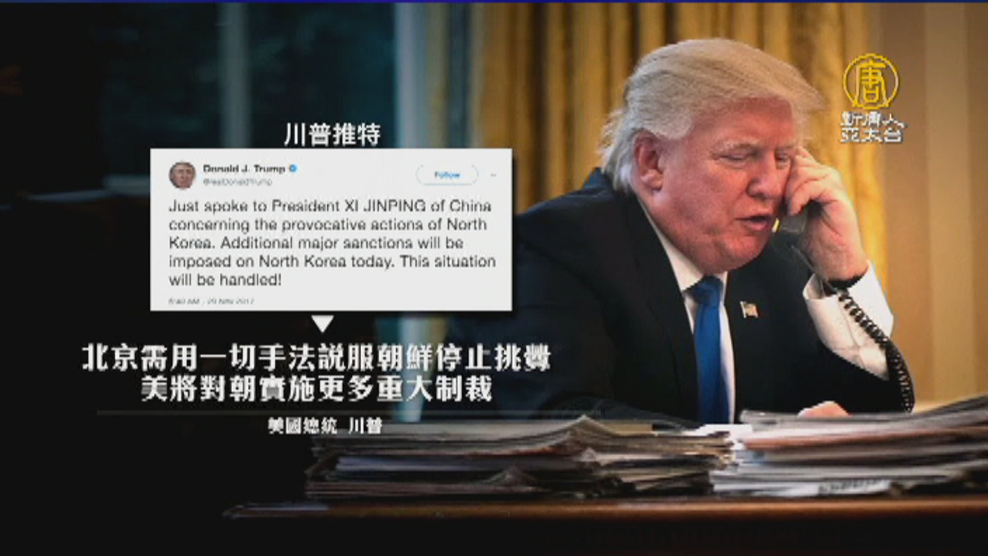 【新唐人亞太台 2017 年 11 月 30 日訊】歡迎回來。週三凌晨,北韓試射了一枚洲際彈道飛彈,即將面臨聯合國進一步制裁。而美國總統川普與習近平通電話後,要求中國停止供應北韓石油,以切斷北韓重要的經濟生命線。對此,中共外交部強調,將嚴格執行聯合國決議。