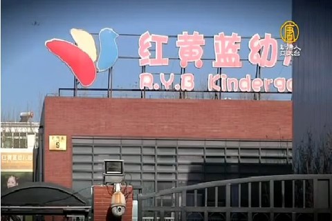 圖為處於虐童猥褻醜聞中的北京紅黃藍幼兒園(新唐人截圖)