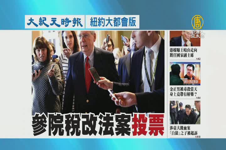 【新唐人亞太台 2017 年 12 月 04 日訊】接著看到大紀元時報紐約大都會版報導:參院稅改法案投票