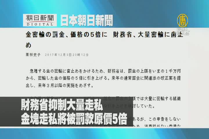 【新唐人亞太台 2017 年 12 月 04 日訊】財務省抑制大量走私,金塊走私將被罰款原價5倍。