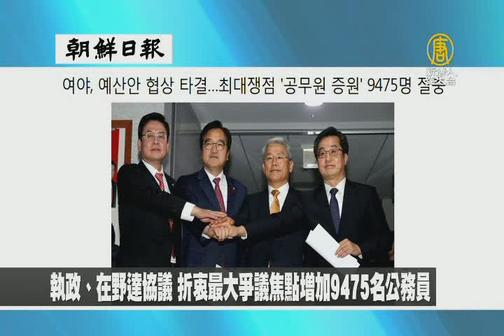 【新唐人亞太台 2017 年 12 月 05 日訊】來看到南韓朝鮮日報報導:南韓執政黨和在野黨達成協議,折衷最大爭議焦點增加9475名公務員。