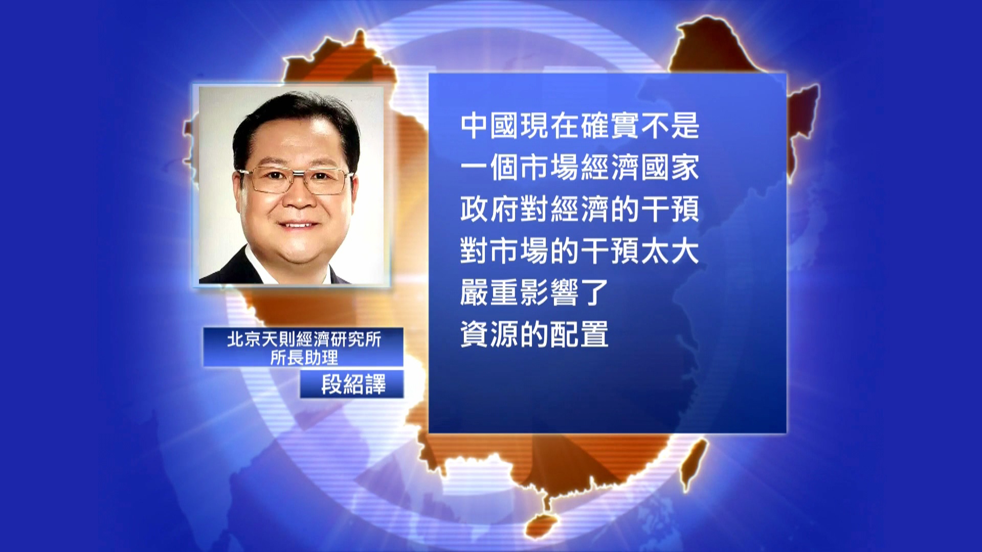 北京天則經濟研究所所長助理 段紹譯:「中國現在確實不是一個市場經濟國家,政府對經濟的干預、對市場的干預太大,嚴重影響了資源的配置。」