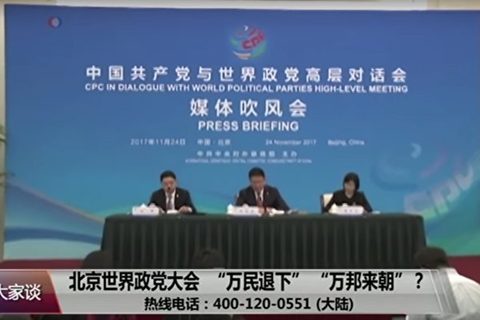 針對北京舉行的世界政黨大會,分析人士稱,在北京大規模驅逐所謂「低端人口」,蔑視公民基本人權和生存權利的時刻,由中共帶頭討論人類命運共同體和政黨責任,實在是一大諷刺。(視頻截圖)