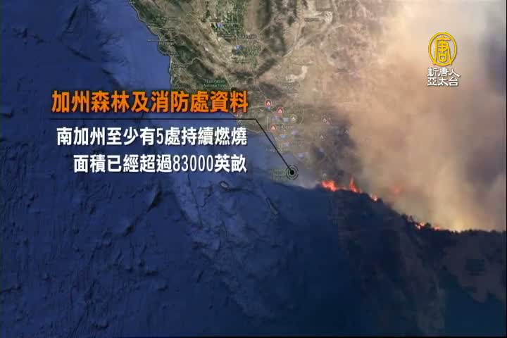 根據加州森林及消防處資料,目前南加州地區至少有5處野火持續燃燒,過火面積已經超過83000英畝。