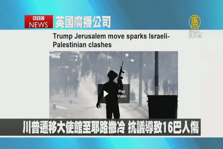 【新唐人亞太台 2017 年 12 月 08 日訊】繼續是英國廣播公司BBC的報導:川普遷移大使館至耶路撒冷,抗議導致16名 巴勒斯坦人受傷。